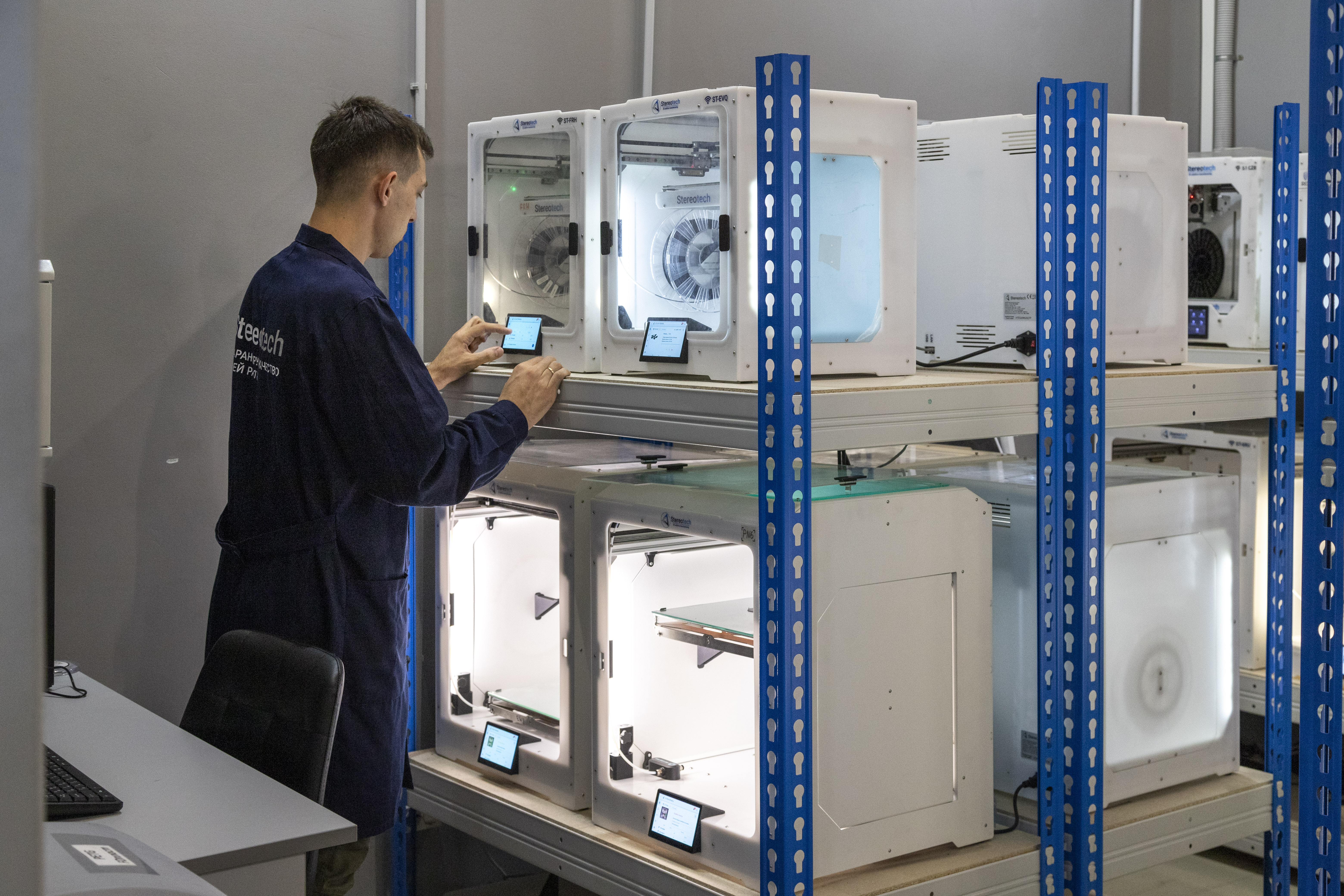 The 5D printer Stereotech is a hybrid 5D printer utilizing 5Dtech technology to produce strong, functional parts from polymer materials.